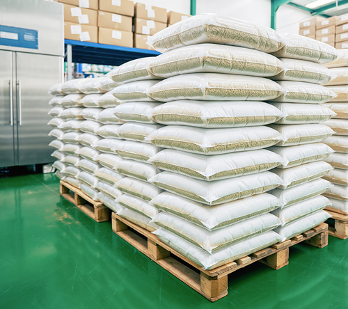 最終製品は、製品ごとの規格に応じて包装されます。業務用5kg・10kgなど様々なサイズに対応しています。包装後、最終検査を経て倉庫内にて保管し、出荷準備が整います。